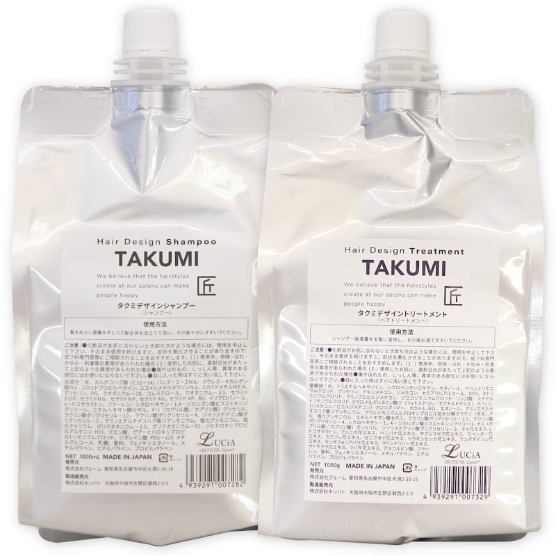 送料無料[セット品]TAKUMI タクミ ヘアデザイン シャンプー 1000ml & トリートメント 1000ml レフィル 4939291007312 4939291007336