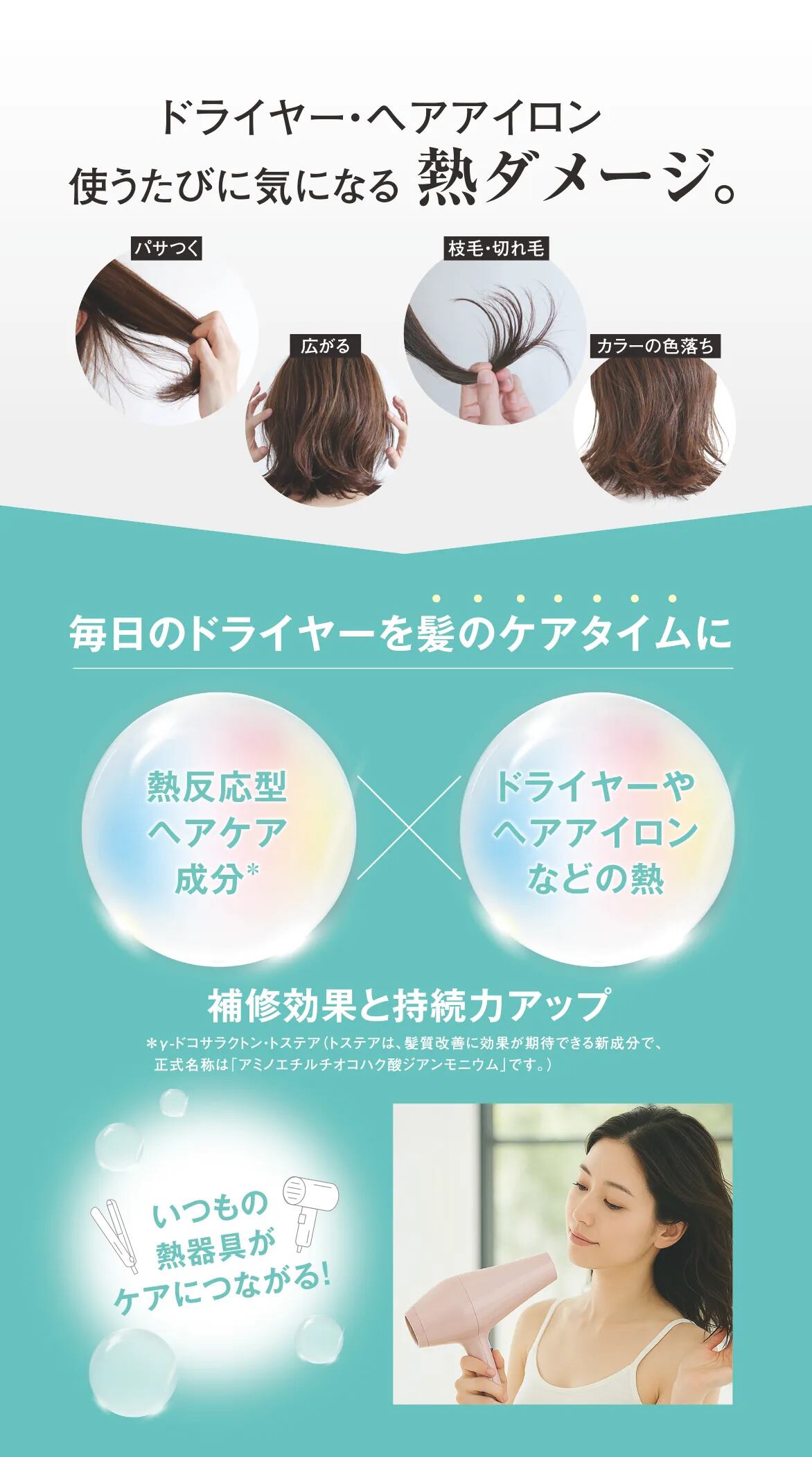 ドライヤーやアイロンの熱に反応して髪になじみ 毎日のスタイリングをやさしくサポートします。